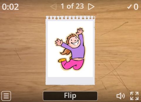 Flip the cards to see what actions people are doing.