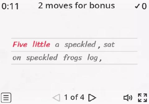 Rearrange into the correct order the words to 'Five Little Speckled Frogs'.