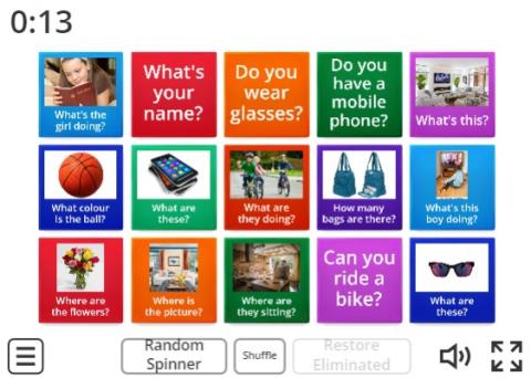 Flip the tiles to answer questions at A1 level.
