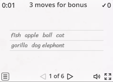A1.1: Words in alphabetical order