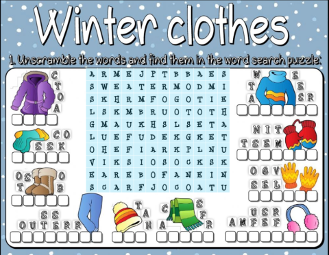 A fun online esl game for kids with an interactive worksheet about winter clothes.