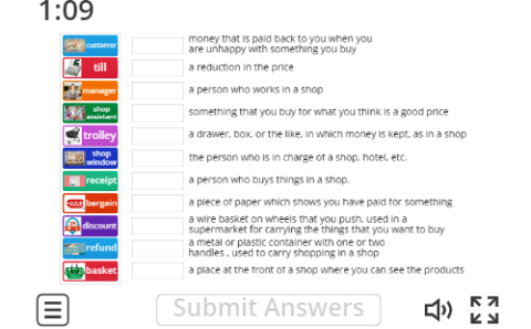 Matching the shopping words with the meaning