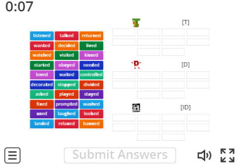 Practising the three ways of pronouncing _____ED at the end of a past tense or participle.