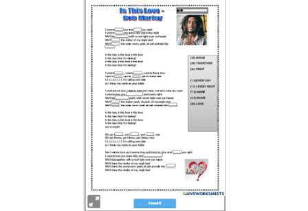Song: Is this Love (Bob Marley), an interactive worksheet by ElaineMiquelao