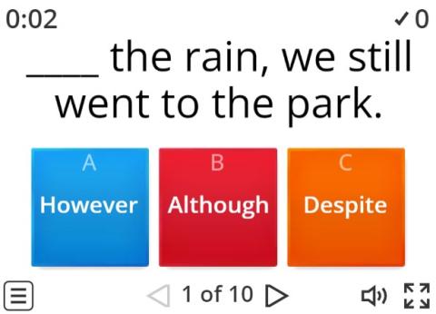 Using the connectors 'even so', 'despite', 'although', 'however', 'while', 'in spite of', 'though'.