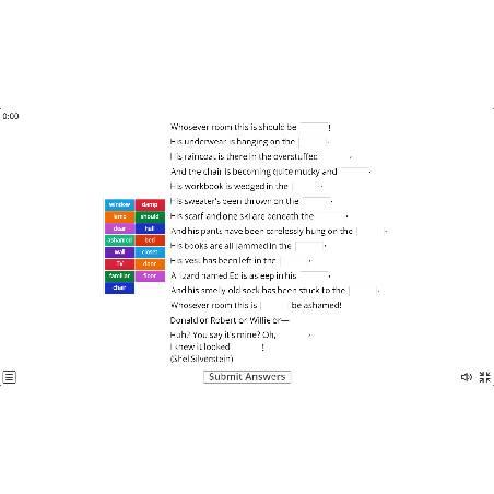 Fill in the missing words in the poem 'Untidy Bedroom'.