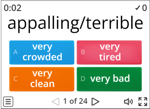 Multiple choice quiz with alternatives words to use instead of 'very'