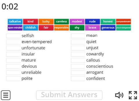 Finding the antonyms to personality traits.